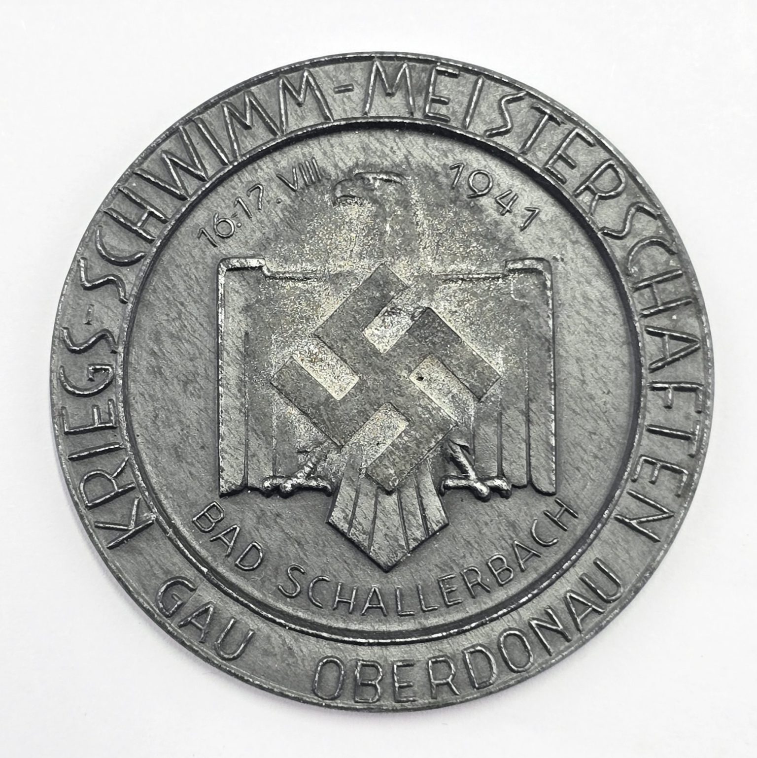 Single sided medal/plaque for swimming dated 1941, 5 cm wide in good used condition.