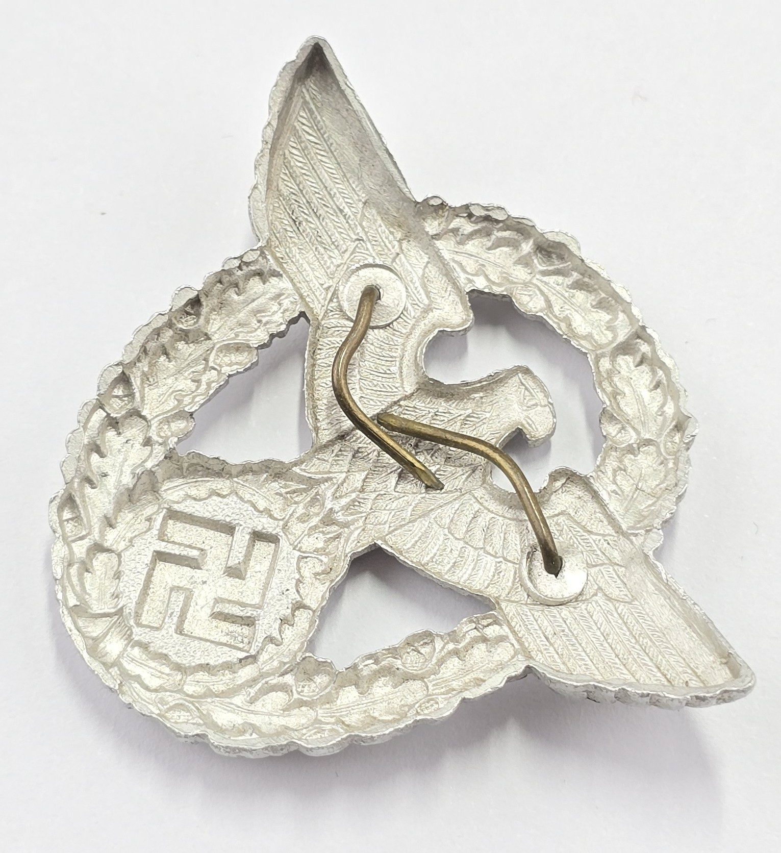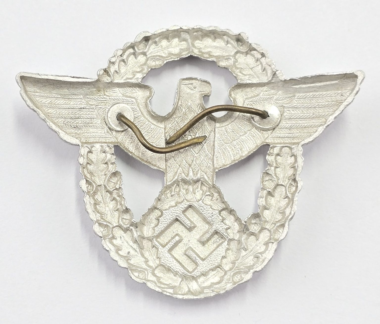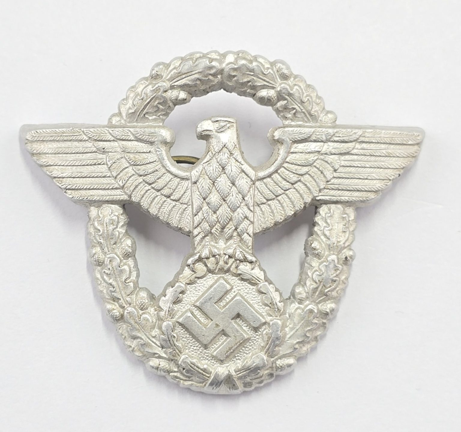 WW2 German alloy police cap eagle and swastika with two pins to back in good condition.