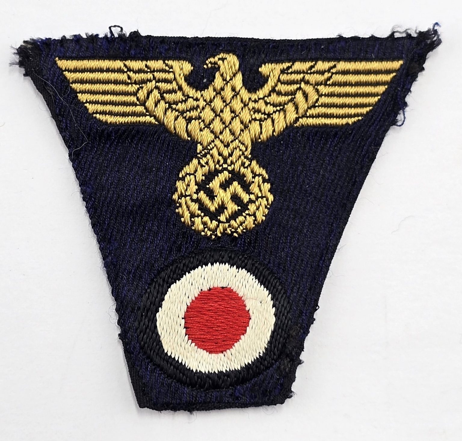 Bevo woven yellow eagle and swastika above the cockade, in good condition.
