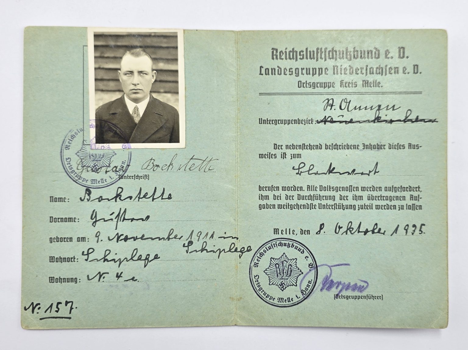 Early 1935 card with civil photograph in good condition.