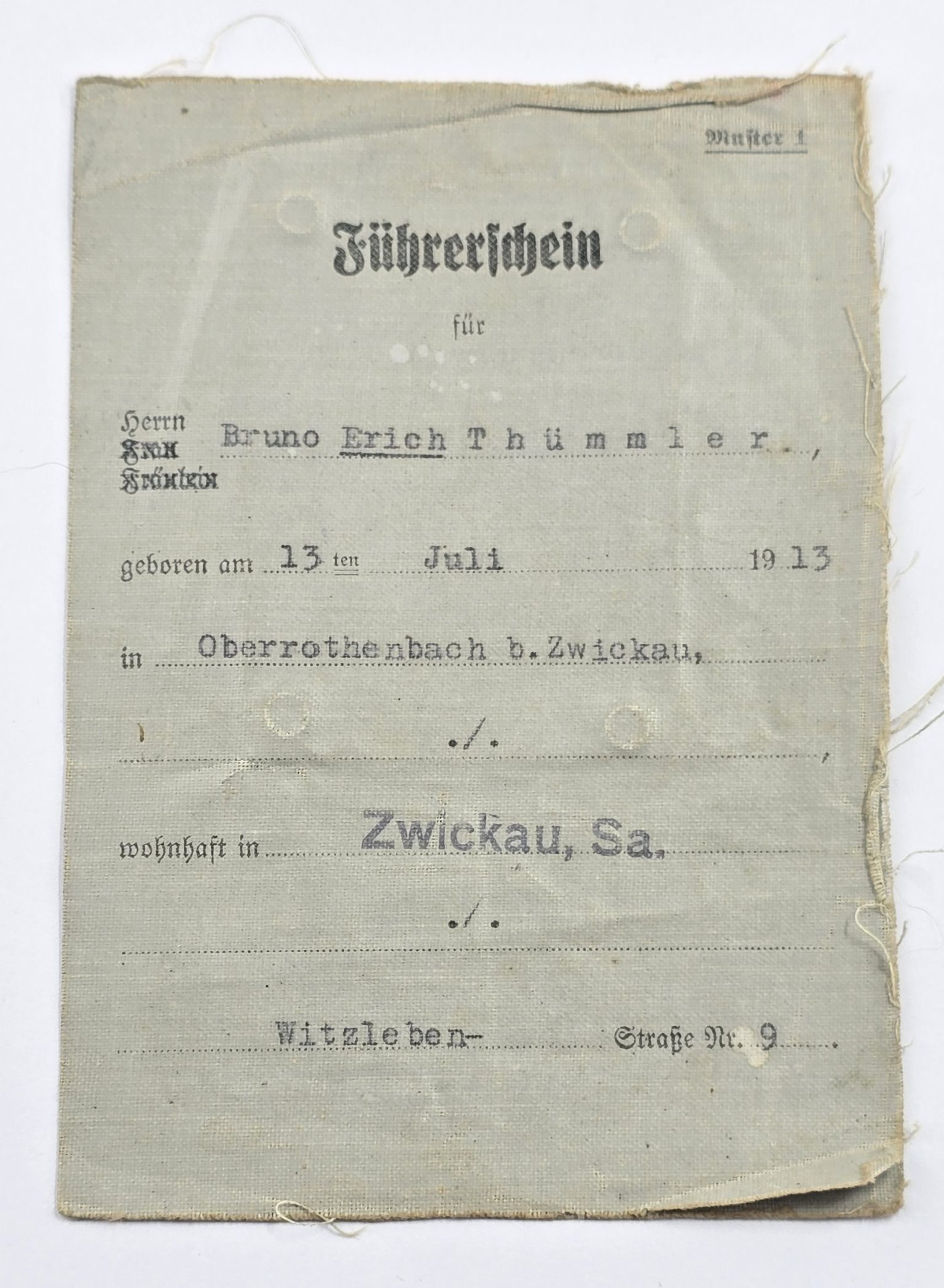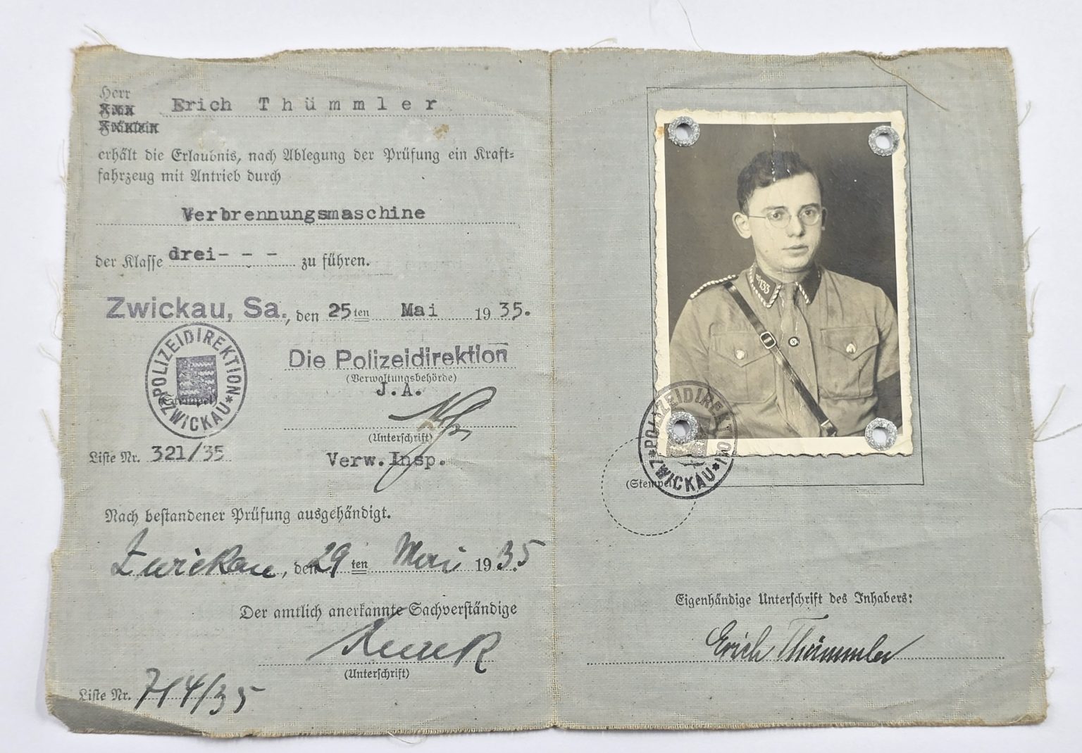Early document with super uniform ID photograph in good condition.