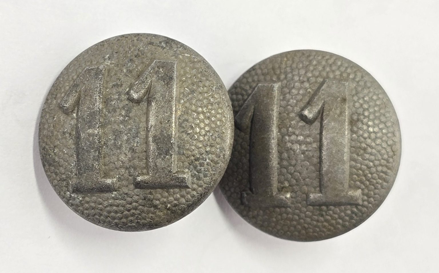 A pair of German RZM marked number 11 shoulder board buttons in good condition.