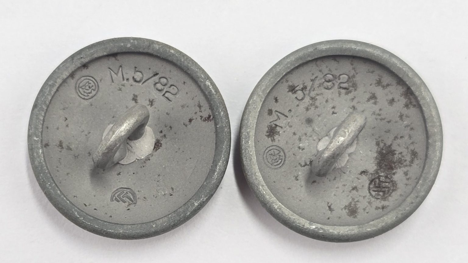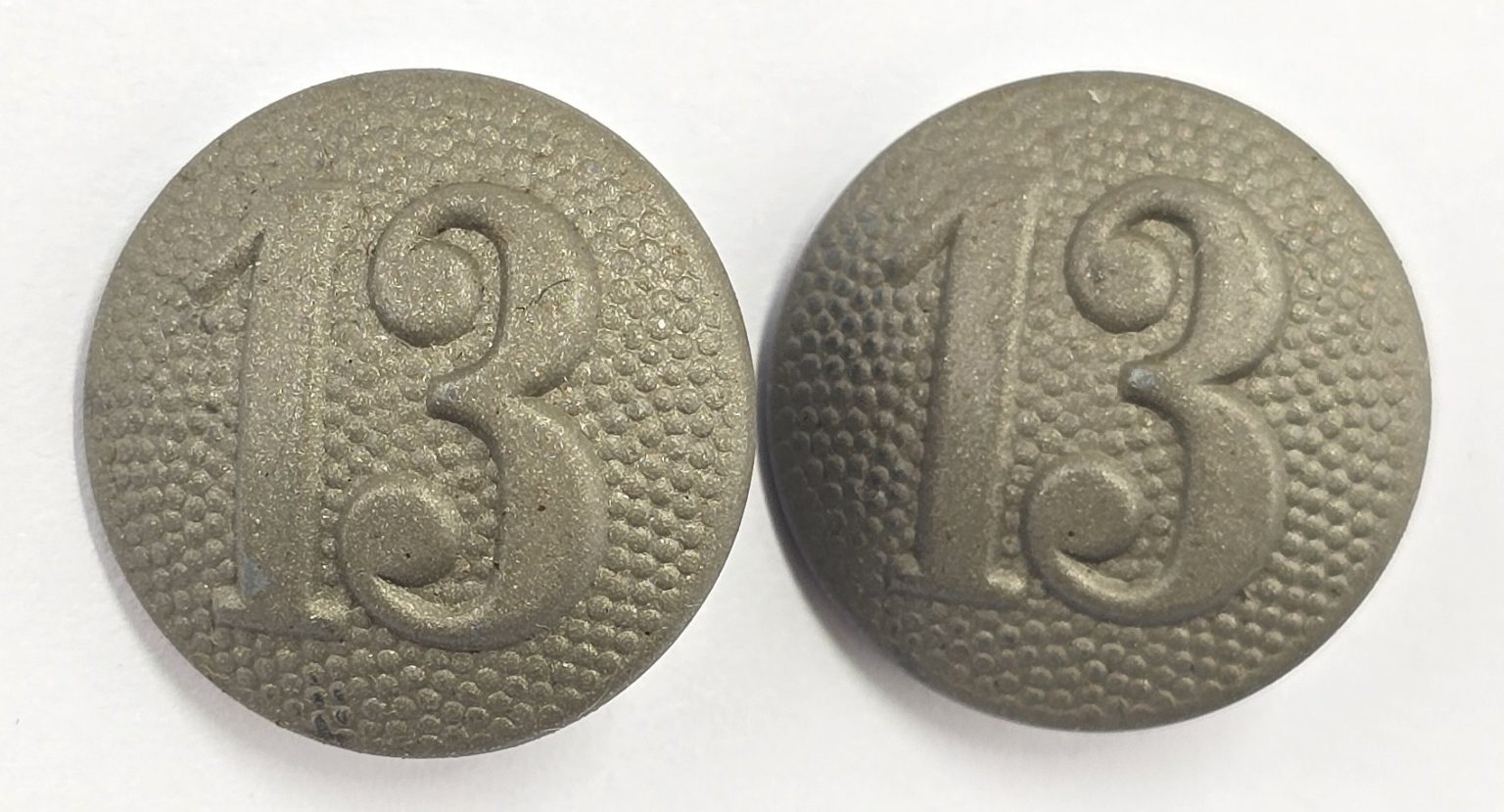 A pair of German RZM marked number 13 shoulder board buttons in good condition.