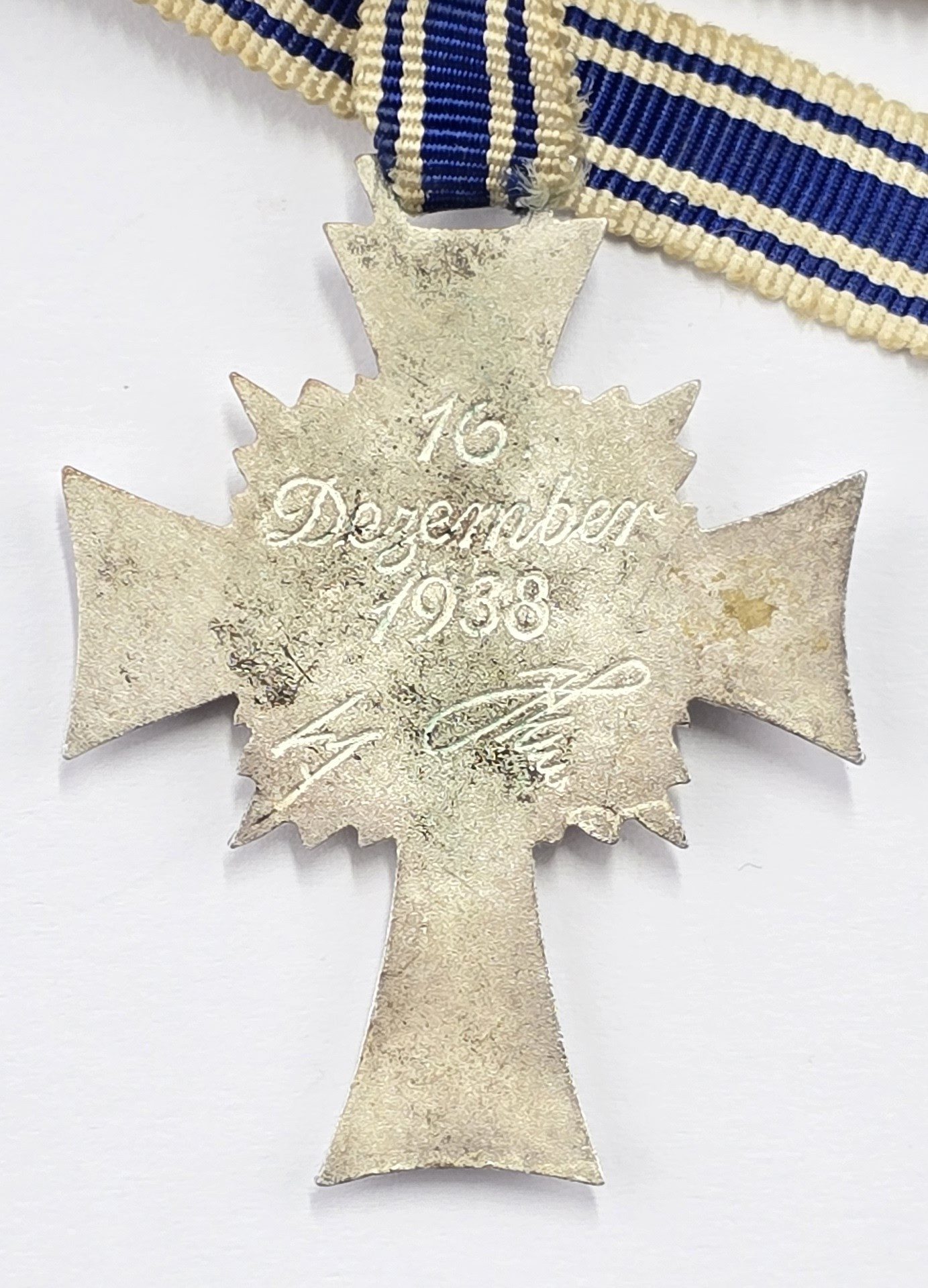 WW2 German large size medal with original part neck ribbon in good condition.