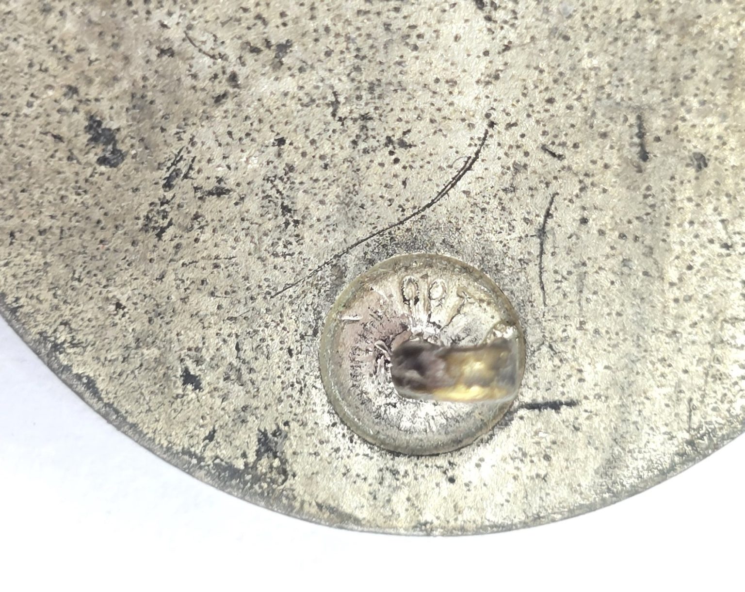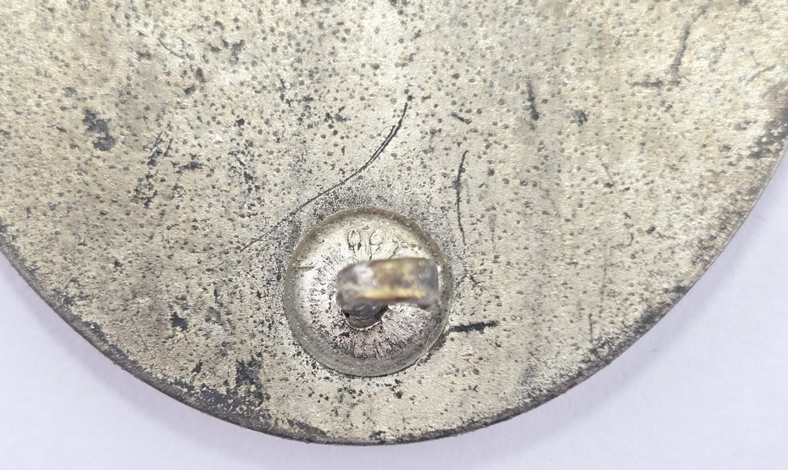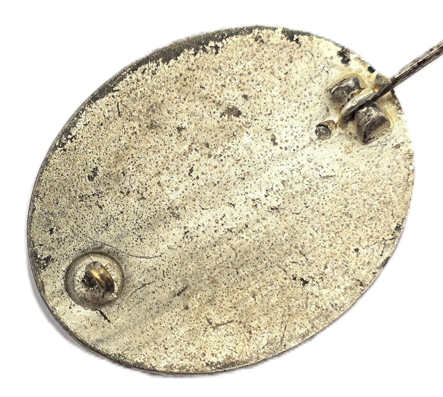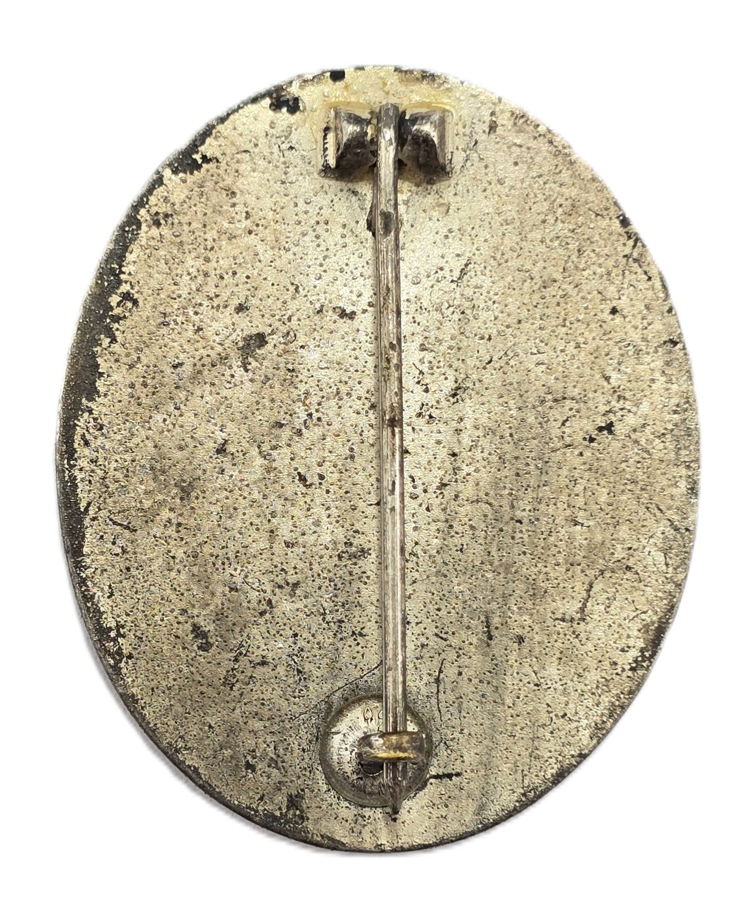 Wound badge has most of the original silver finish, with pin and catch to back, maker marked 100, in good used condition.