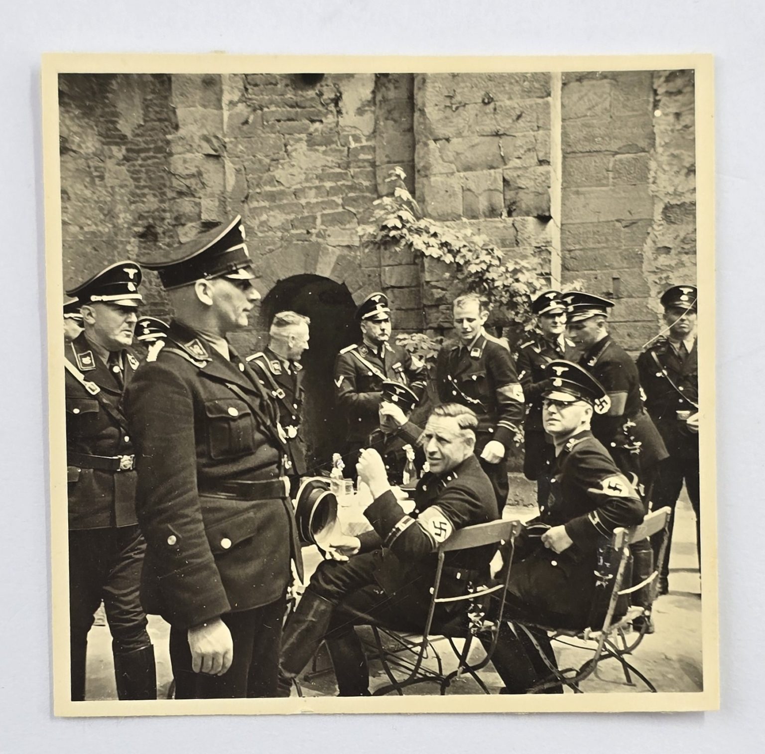 Super photograph full of SS men and officers showing good uniform detail, 5.5 x 6 cm in good condition.