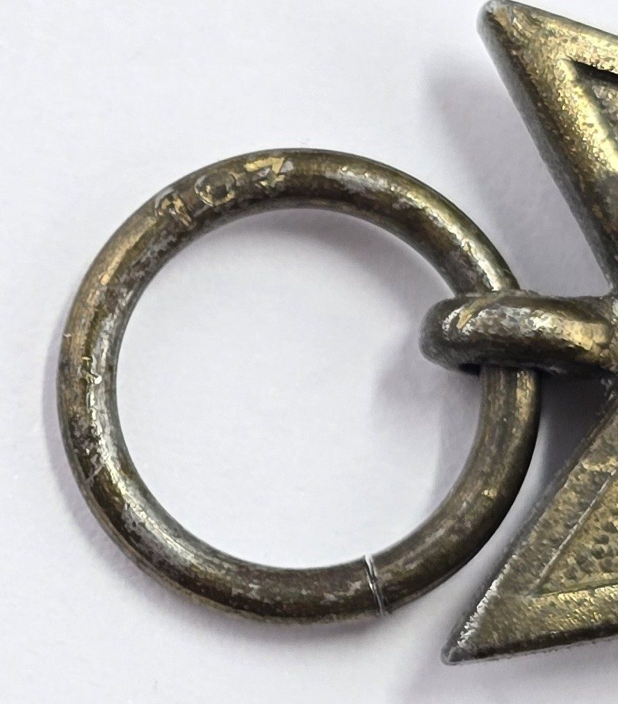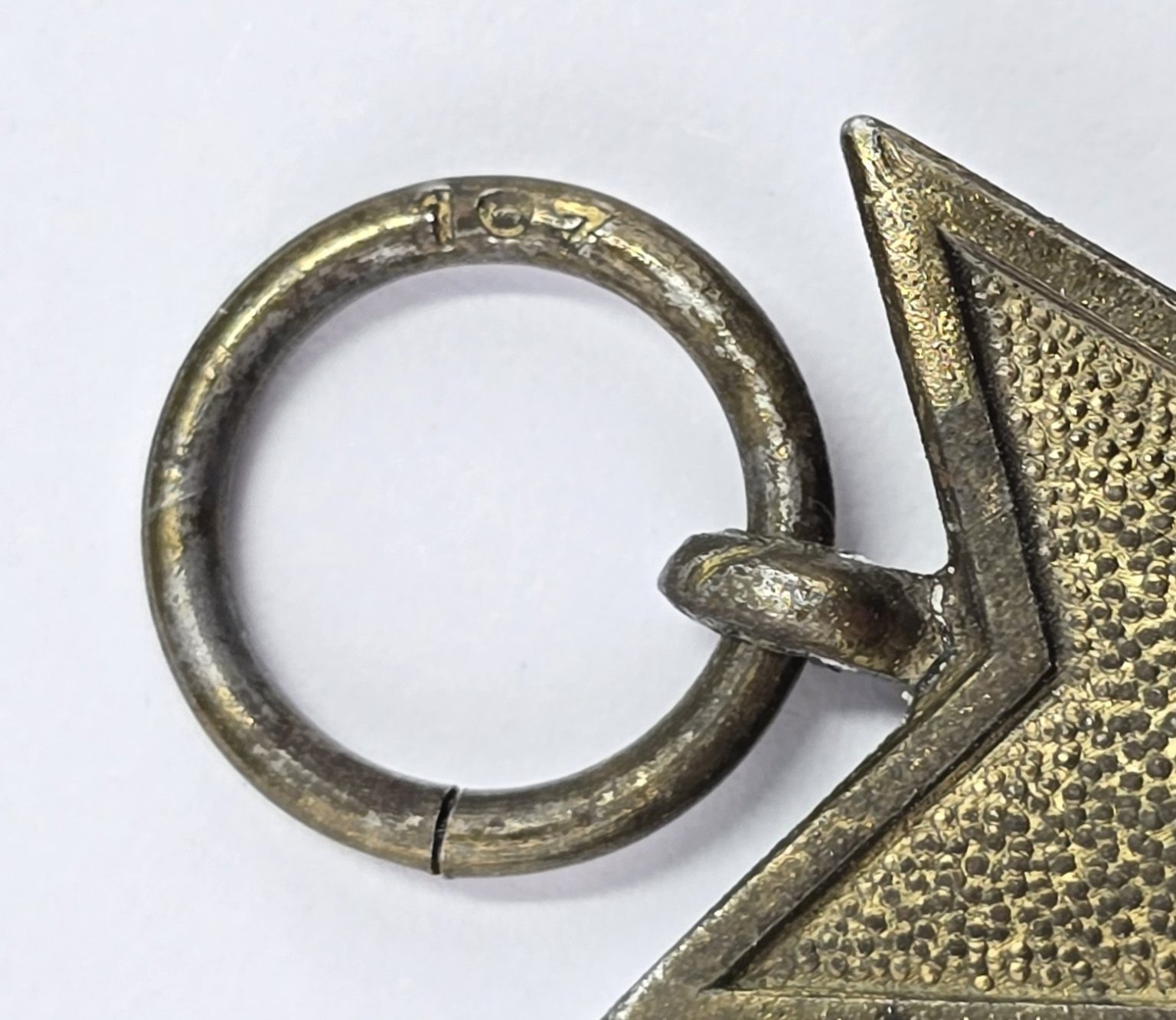 large size with original ribbon with maker stamped 107 to ring,in good condition.