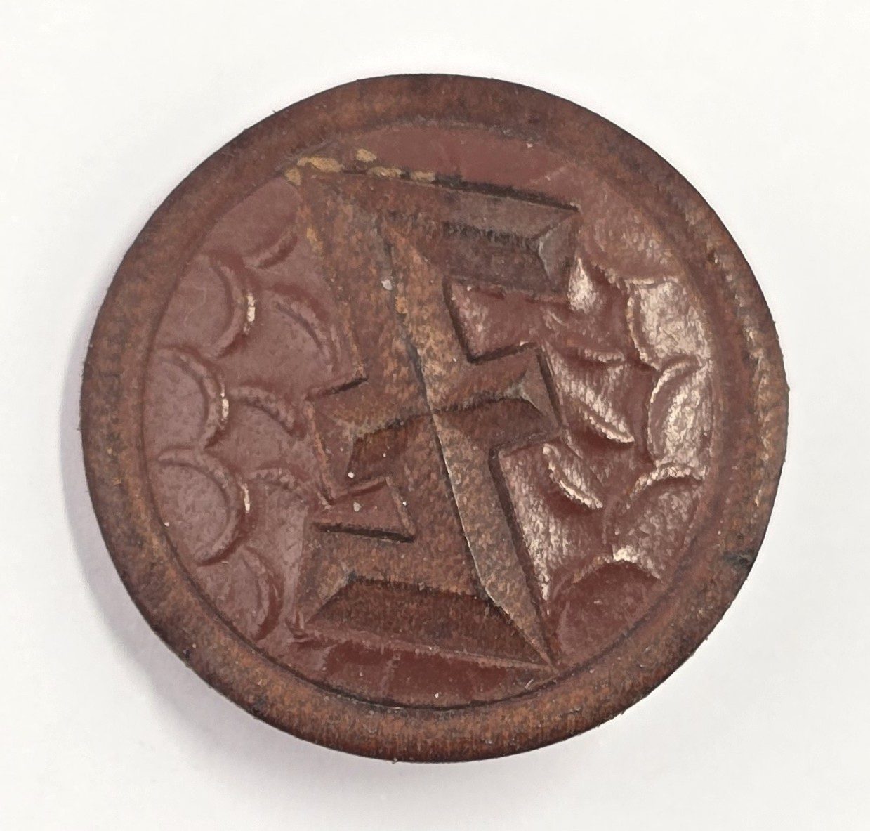 WW2 German stamped leather rune badge with pin and stamping to back in good condition.