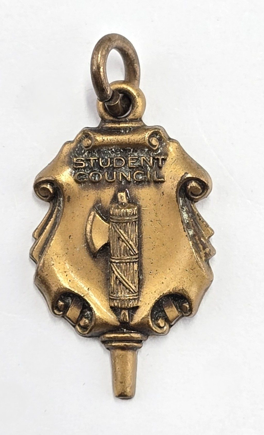 Bronze metal WW2 Italian Fascist axe pendant on hanging ring,2.5 cms long in used condition.